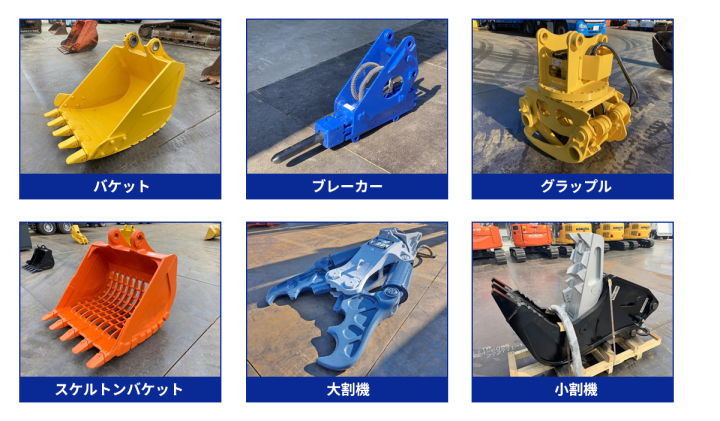 新品で購入すると高額になりやすいため、中古やレンタルで「バケット+ブレーカー+グラップル」といった複数装備を揃えるのは現場にとって大きなメリットです。
