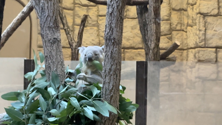 撮影でコアラ館に立ち寄ったところ、ちょうどコアラが夢中でユーカリを味わっているシーンに遭遇しました。